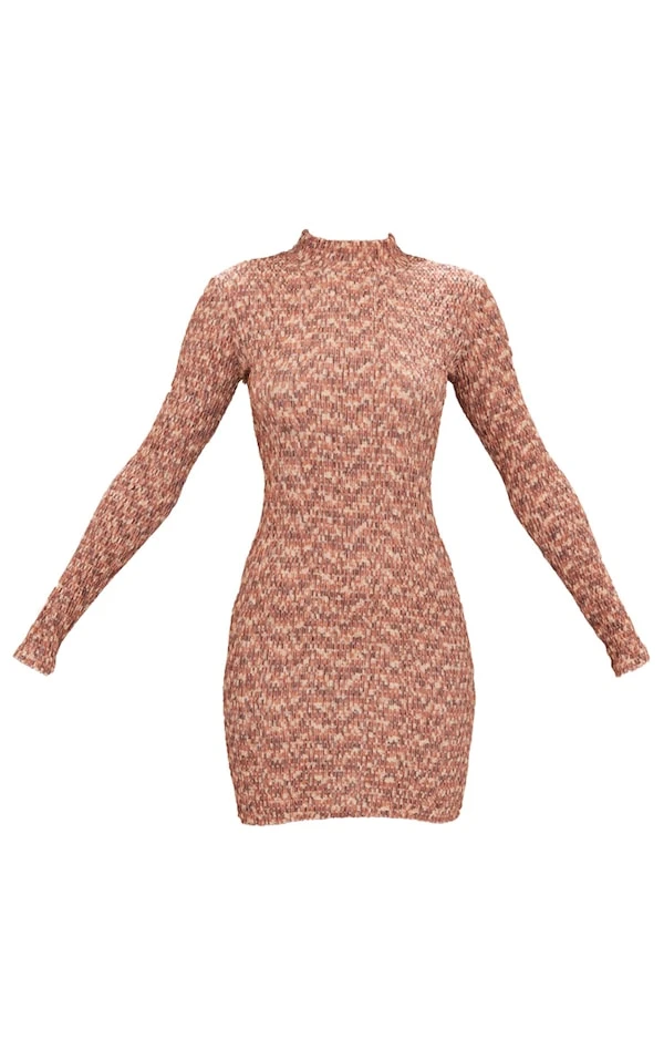 A cutie dans cette robe marron ! On aime ses fronces sur le devant façon robe à smocks, son effet chiné et son col montant très chic. Elle se porte facilement avec des bottes pour un look de city girl trop mims !