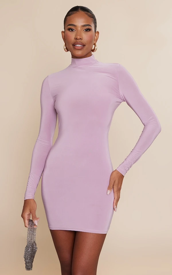 Robe moulante mauve découpée dans le dos croisée à manches longues