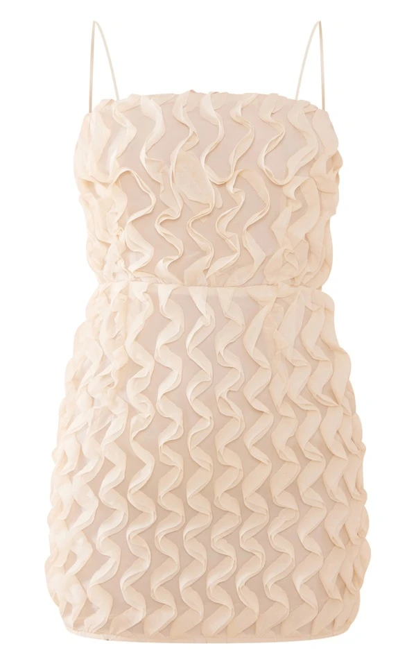 Robe moulante texturée nude à bretelles spaghetti
