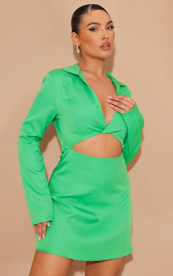 Robe moulante vert vif découpée à col