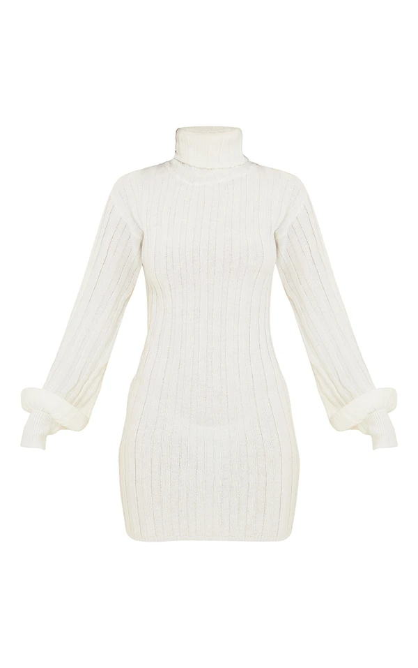 Canon la robe pull ! Celle-ci est juste parfaite avec son coloris crème délicat, son col roulé et sa maille tricot côtelée tellement cosy. On ajoute des bottines et un sac pour aller retrouver les copines en ville.