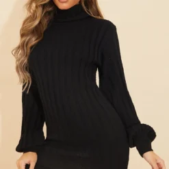 So comfy la robe pull ! On craque pour celle-ci au coloris noir classique, au col roulé qui nous tient chaud et pour sa maille tricot côtelée structurante. On la porte avec des boots et une veste biker pour un look urban babe.