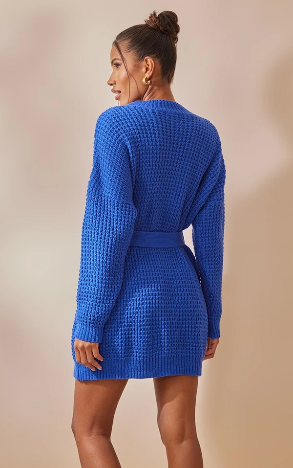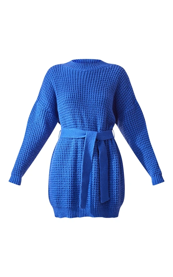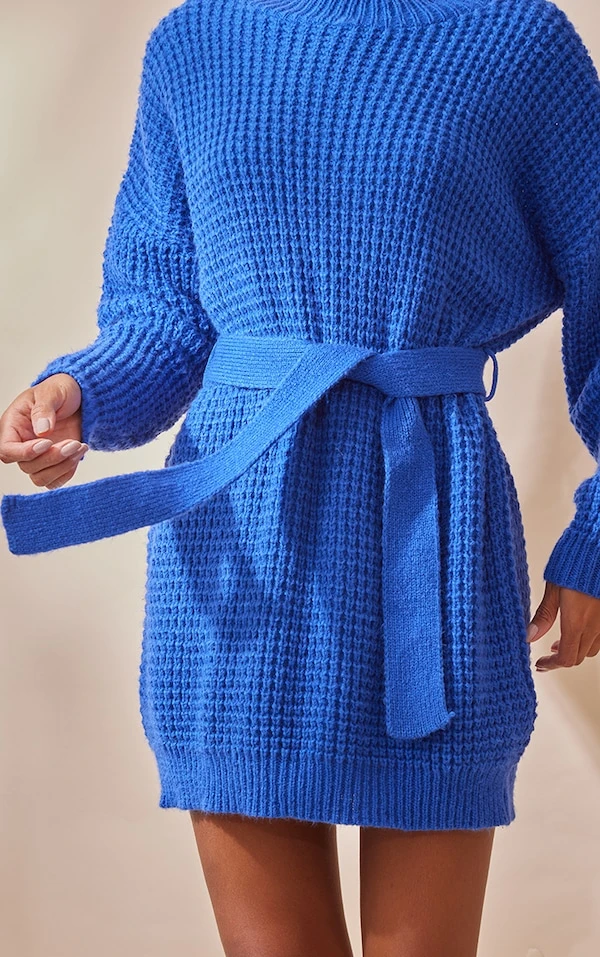 Trop canon cette robe ! Avec sa maille tricot so cosy, son coloris bleu vif et son style gaufré, c’est clairement must-have. On enfile une paire de cuissardes et des créoles épaisses. Crush sur vous dans ce look.