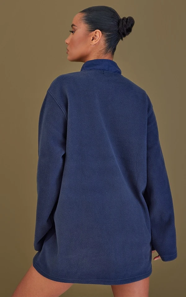 Robe pull en polaire bleu marine à slogan Athletics et boutons-pression