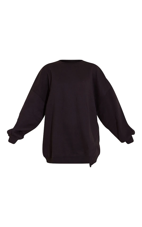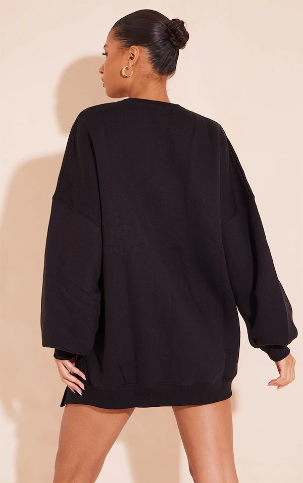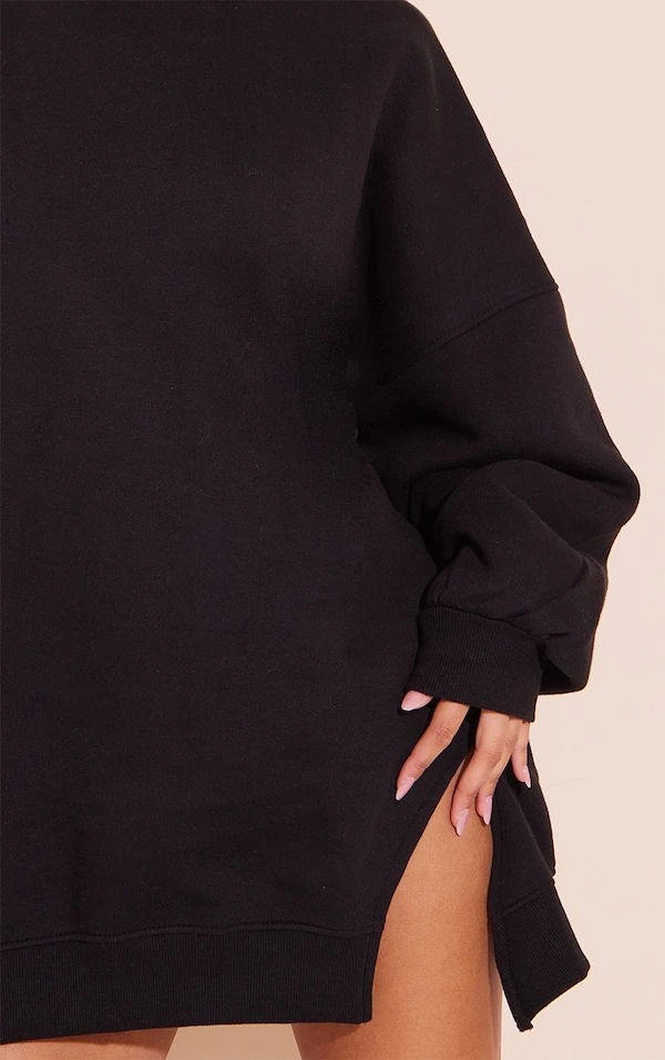 Robe pull en sweat noir à col ras et ourlet fendu