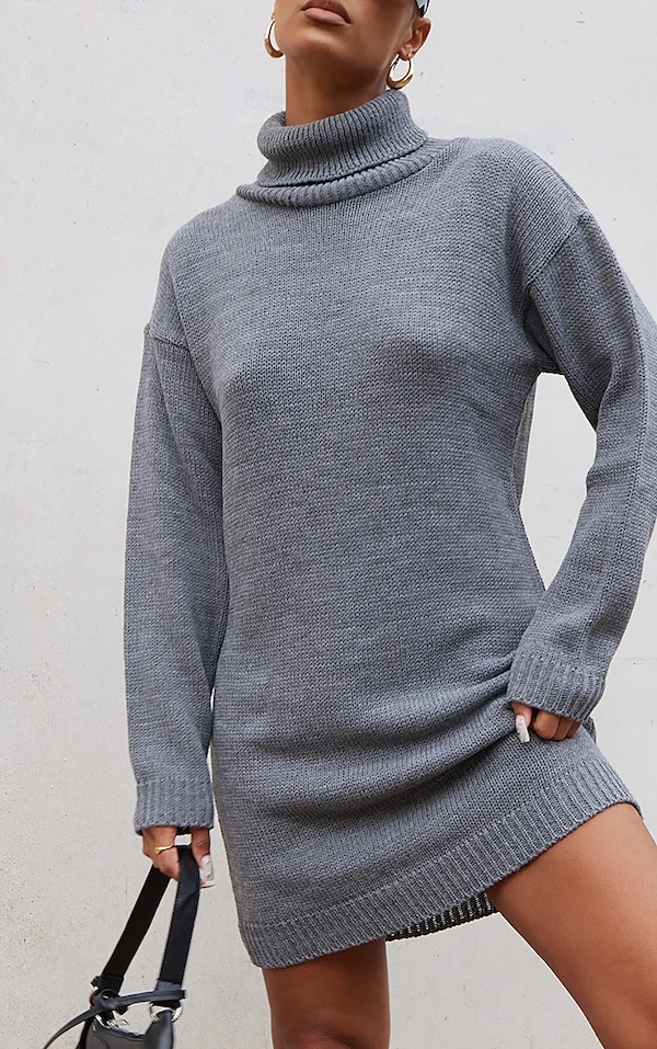 Robe pull grise basique en maille tricot à col roulé