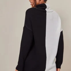Robe pull mi-longue en maille gris pierre à boucle et col roulé