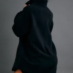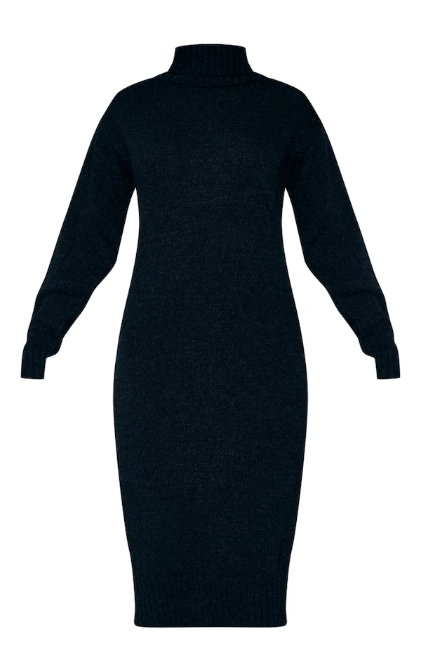 Robe pull mi-longue en maille noire à boucle et col roulé