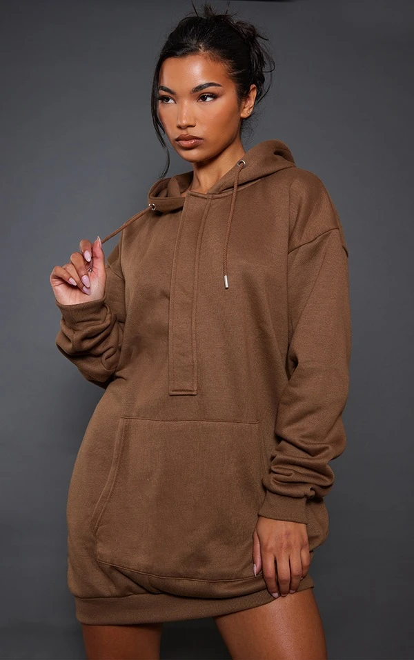 Robe Sweat Espresso à Capuche Et Poche Oversize Devant
