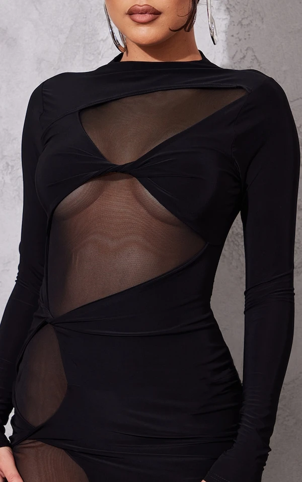 Canon, cette robe. Avec sa coupe très moulante ultra flatteuse, sa couleur noire qui se porte avec tout et son design à parties en mesh et à noeuds, on l’adore. Portez cette robe en soirée avec une paire de mules et quelques accessoires, tout simplement !