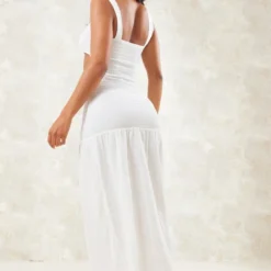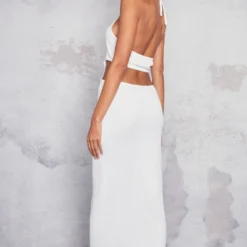Robe Longue Découpée Blanche En Maille Texturée Contrastante