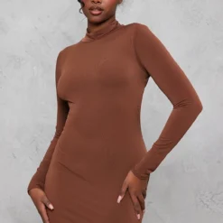 Robe Très Moulante Chocolat à Découpe Et Lanière Dans Le Dos